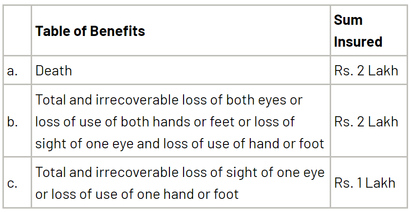 2 LAKH in the case of Both Eyes Loss or Both Hand Loss or Both Foot Loss